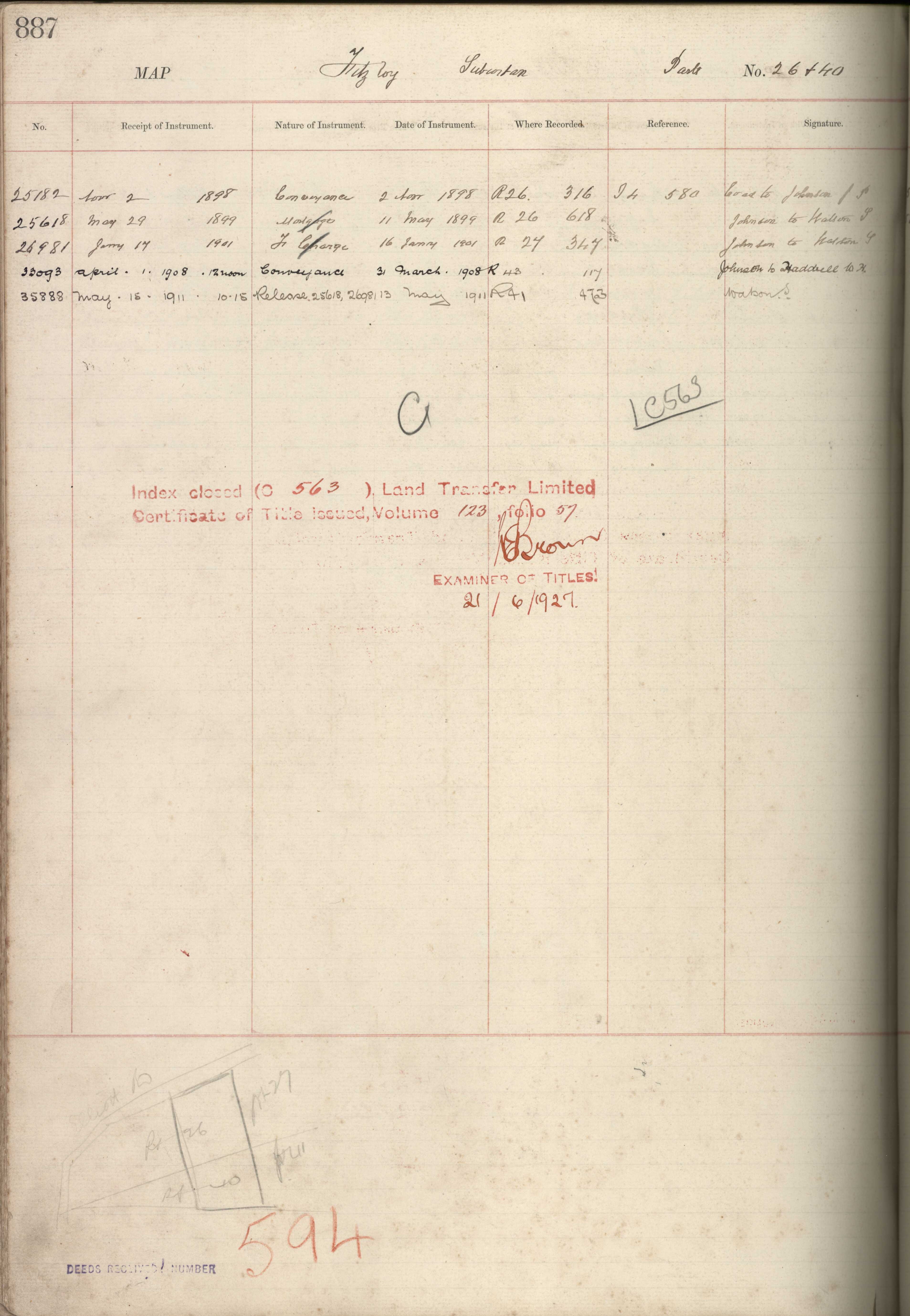 Taranaki Land Deed Index I4 Page 314 and I14 page 887. (Archives New Zealand)
